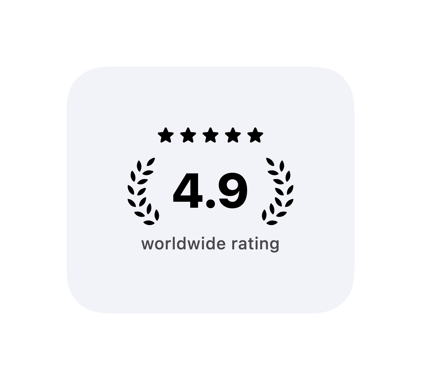 <RatingLaurelsBadge rating={4.9} caption="worldwide rating" showStars={true} />Properties